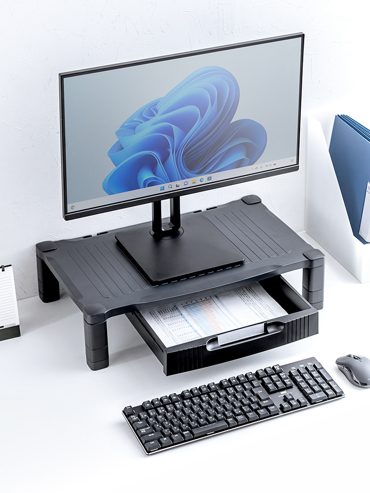 モニター台。液晶ディスプレイなどを載せデスク上のスペースを有効活用できる机上ラック(卓上デスク)。