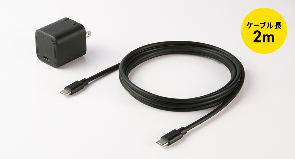 長さ2mのUSB Type-Cケーブルが付属しています。別途充電ケーブルを用意する必要がありません。