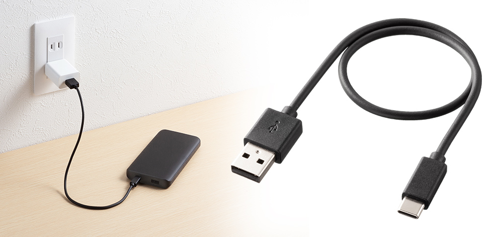 スマートフォンやタブレットへ充電ができます。持ち運びしやすい薄型形状です。