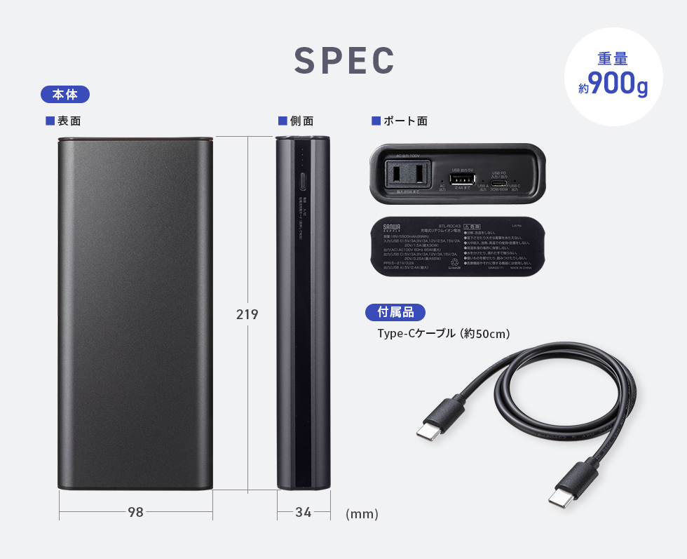 ※AC出力ポート・Type-Cポートは同時に使用することはできません。