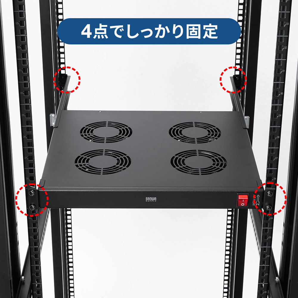 高性能ファンを4台搭載し、強力な風量でラック内の熱を効率よく排出します。