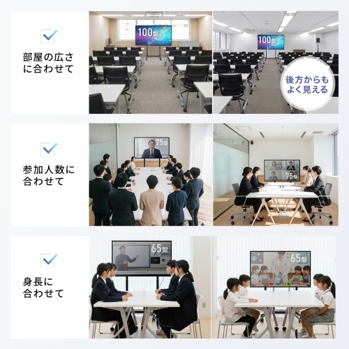 学校やオフィスなど、大人数でディスプレイを見る場所におすすめです。