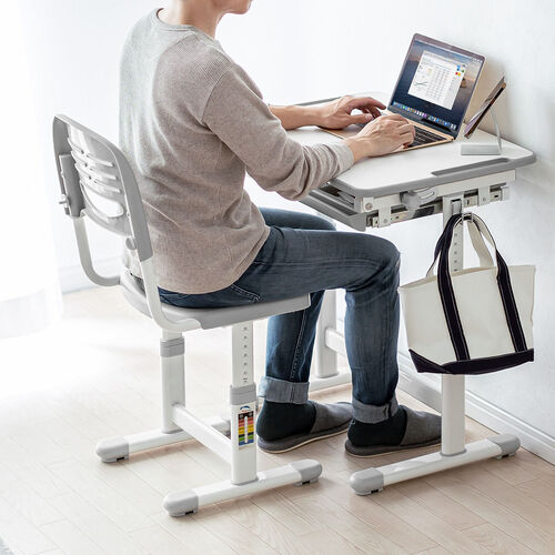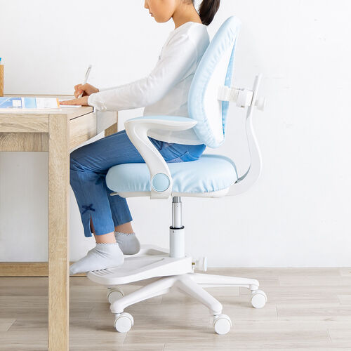 A年齢についての制限などはございませんが、身長については約120cm〜を目安としてください。高さ調節などはガス圧リフト装置により簡単に行うことができますが、想定を超えた身長(120cm以下・200cm以上)の場合、正しい姿勢を保つための効果が十分に発揮されないことがありますのでご注意ください。