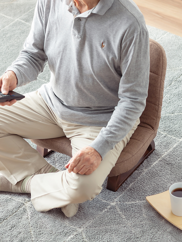 座敷に直接座るのとは違い、座⾯下に⾜を⼊れられるため、あぐらでも重⼼が安定し背筋を伸ばして座れます。