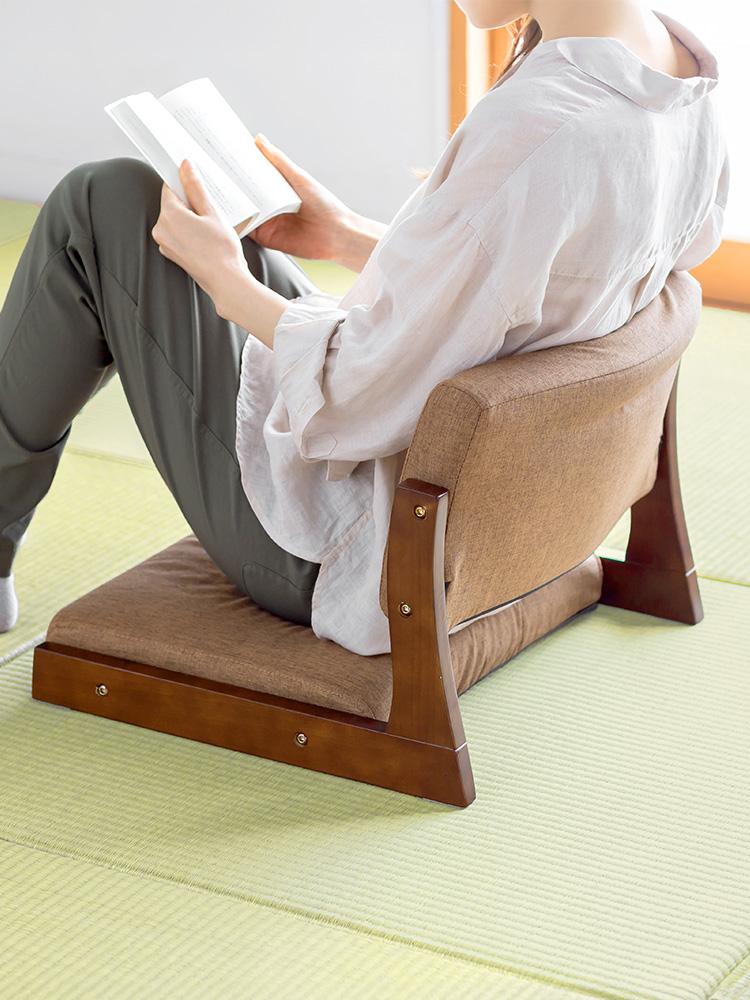 あぐらで座っても自然と背筋が伸びる、コンパクトな高座椅子です。座面に体重を乗せられるので、足に負担がかからず、高齢者の方でもあぐらと正座で、正しい姿勢で座ることができます。座面の位置が高すぎないので、ローテーブルで遊ばれるお子様にもぴったりです。シンプルなデザインなので、和室はもちろんフローリングのお部屋でも自然に馴染みます。届いたらすぐに使える組立完成品。