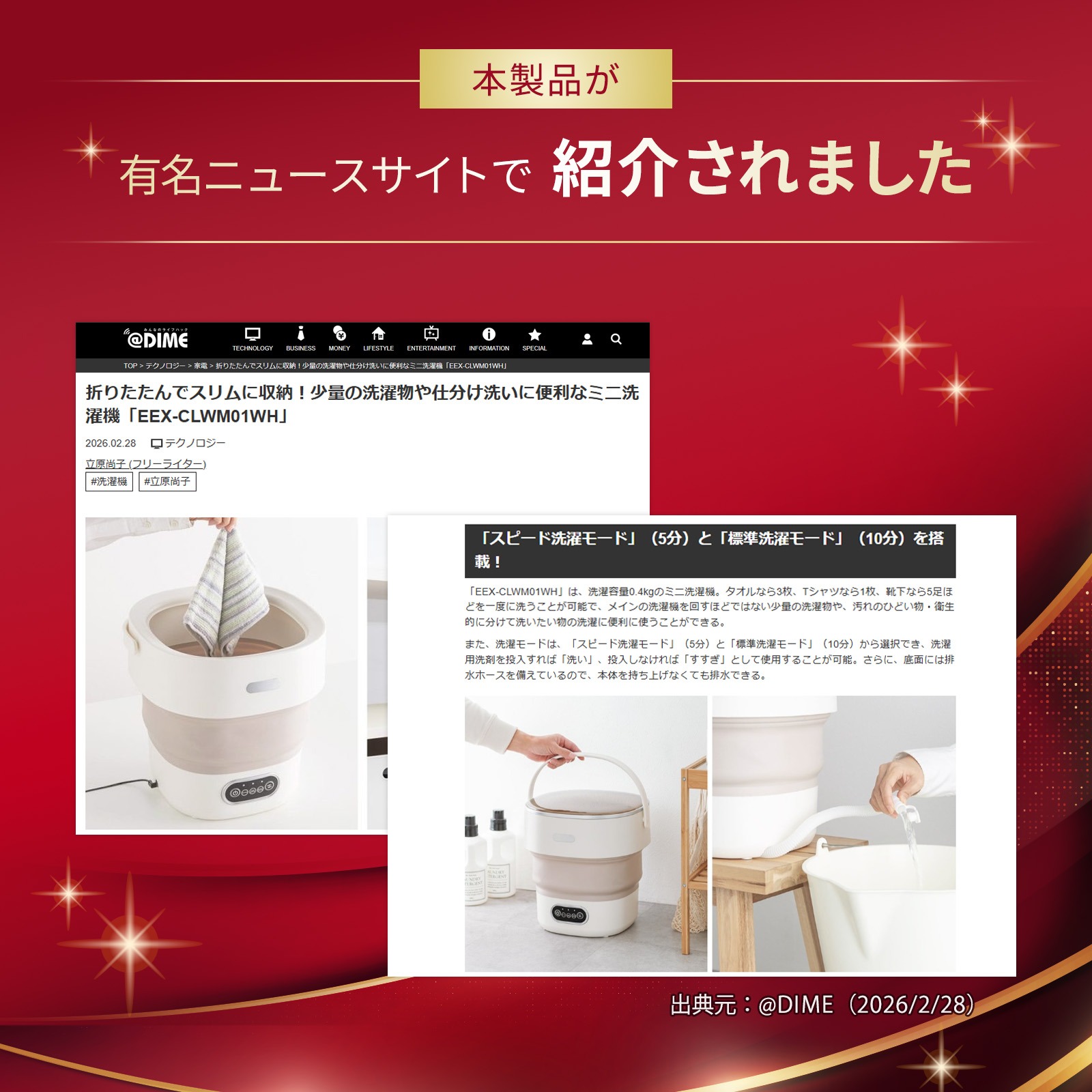 少量の洗濯物や仕分け洗いに便利なミニ洗濯機。折りたたみ式で、使っていない時はスリムに収納できる。