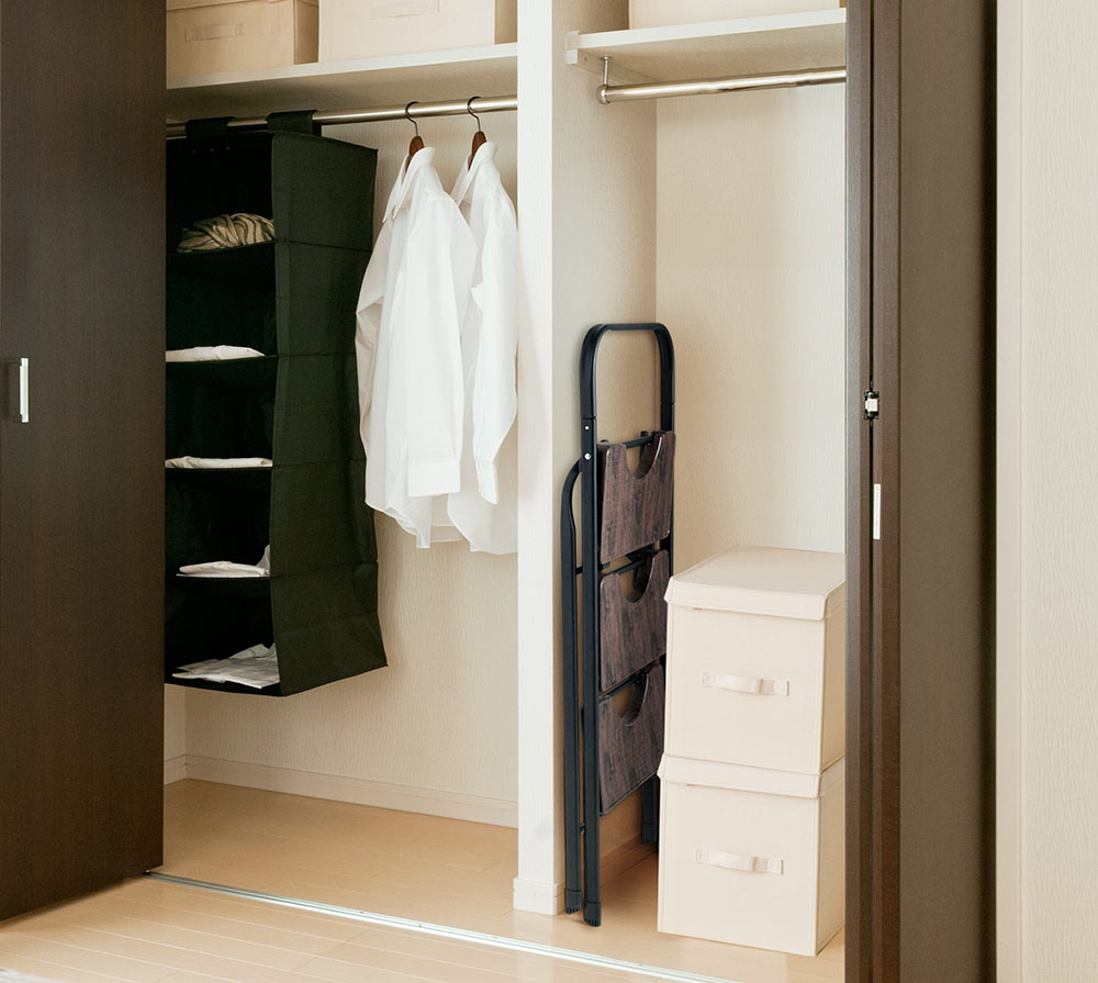 高い位置の荷物の出し入れや、掃除などに便利な3段タイプの踏み台です。持ち手付きなので、安定して上り下りすることができます。また、足が置きやすい大きなステップを採用し、脚立に乗り慣れていない方でも使いやすい作りになっています。使用していない時は、サッと折りたたんで省スペースに収納したり、小物を置いて飾り棚のようにも使えます。