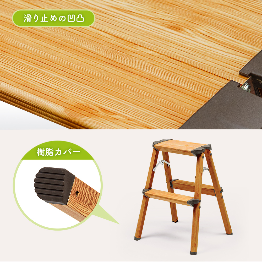 脚裏の樹脂カバーとステップ部分の滑り止め加工で、安心して上り下りできます。