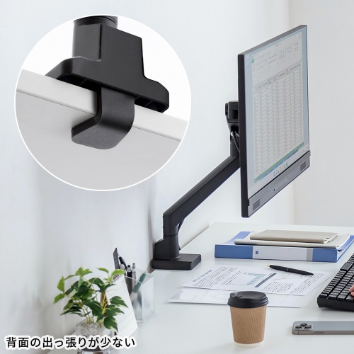 | 特長 | 幅広いサイズのモニターに対応 | 大型モニターやウルトラワイドモニターにも使える | ロングセラーのコスパ最強モデル | 出っ張りが小さいスリムクランプ採用 | 奥行わずか38mmの薄型ショートクランプ |