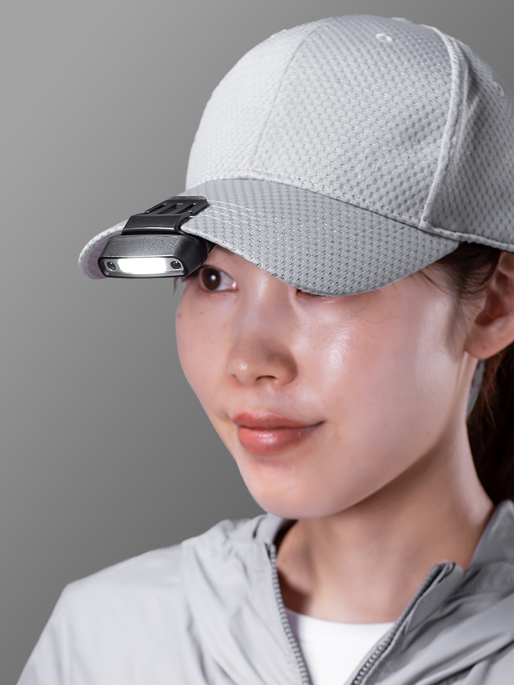 頭やヘルメットの上に装着して、対象物を照らしながら、両手が自由に使えるヘッドライトです。比較的近い距離広範囲に照らすフロントライトと、少し離れた狭い範囲を照らすヘッドライトを搭載しています。フロントライト・サイドライトともに、各2段階で光の強さを変更できます。電源ボタン長押しでフラッシュモードでも使用できます。また、モーションセンサーをONにすることで、手をかざすだけで、電源の入切が可能です。充電式のため、電池を準備する必要がありません。防水規格IPX4を取得しているので、不意の雨などにも心配いりません。