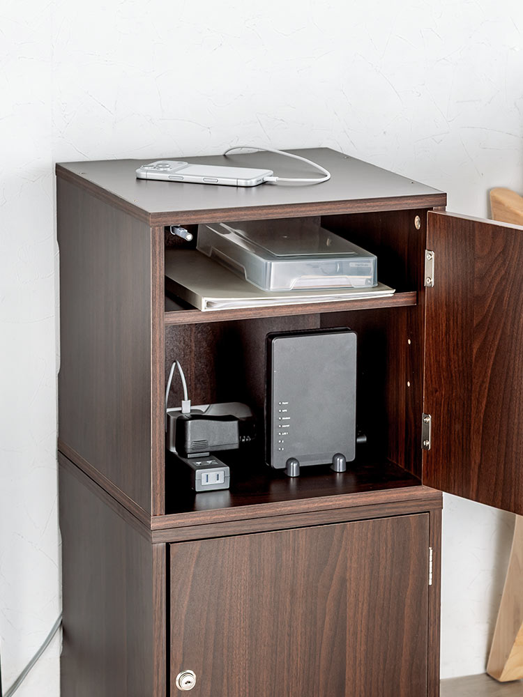 周辺機器をスッキリまとめる収納ボックスです。高さ51cmの小型サイズ。