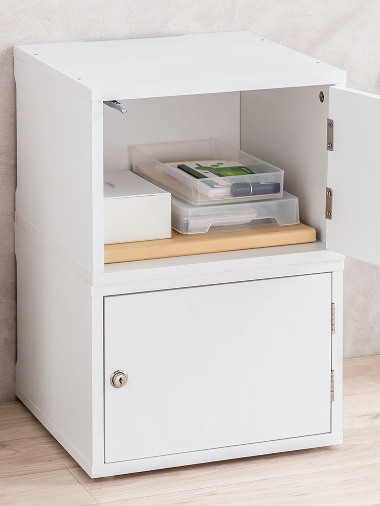 | 特長 | 木製でお部屋に馴染む鍵付きキューブボックス |