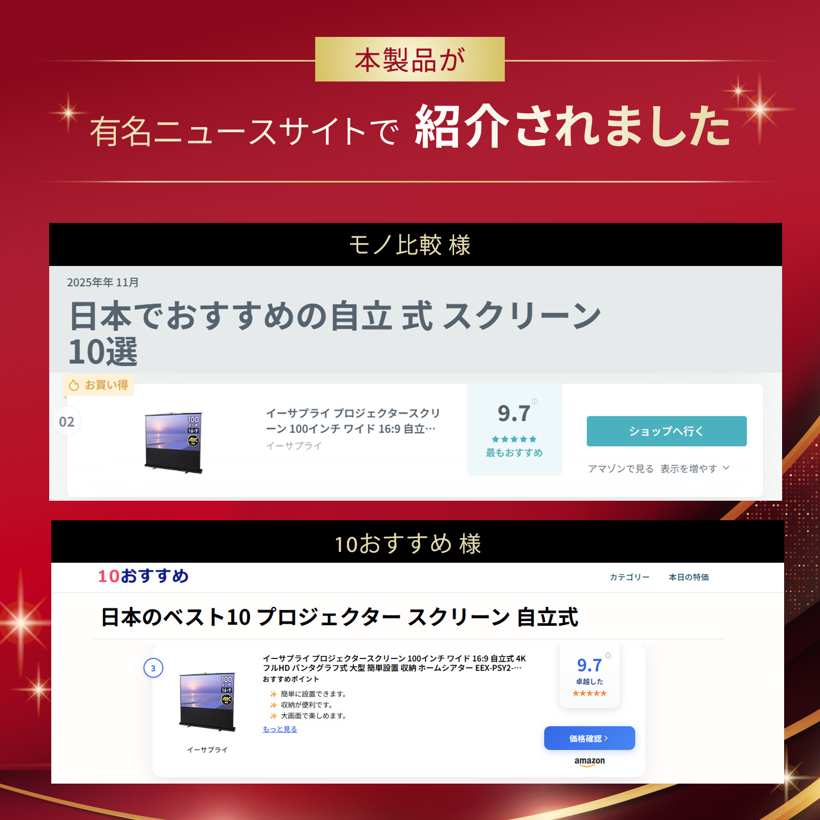 80インチから100インチのスクリーンを探していてこちらにたどり着きました。
