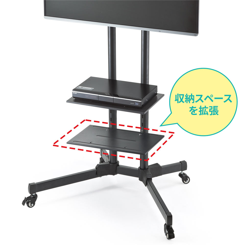 中棚を追加することで機器や小物の収納量をさらに増やし、今まで以上に快適にお使いいただけます。