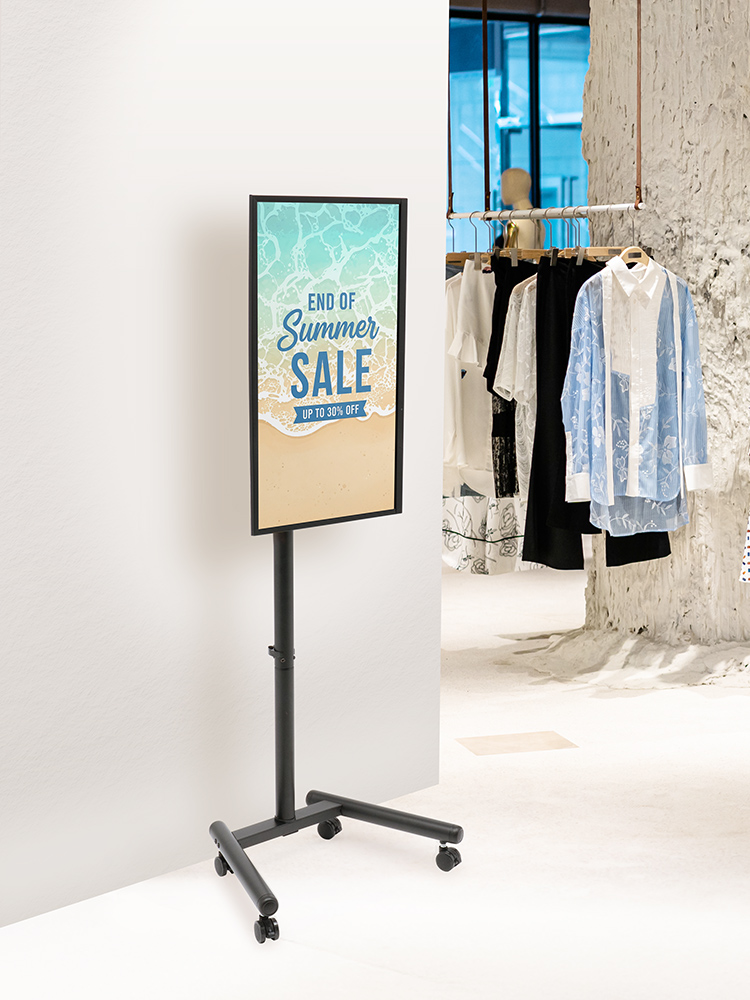 折りたたんでスリムにできるデジタルサイネージ向けテレビスタンドです。