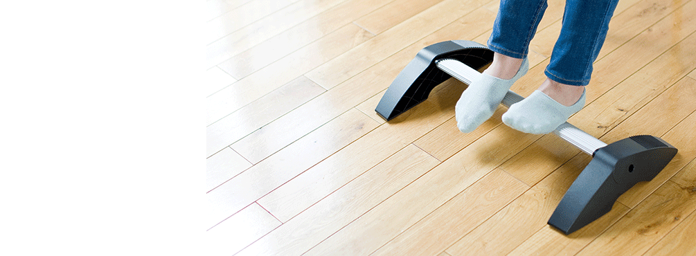 角がある形状なので、靴のヒール部分を引っ掛けることで、力を抜いたままフットレストを使用できます。