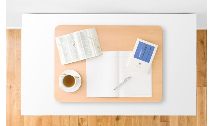 勉強机として(英和辞書、A4ノート、文庫本、カップ)