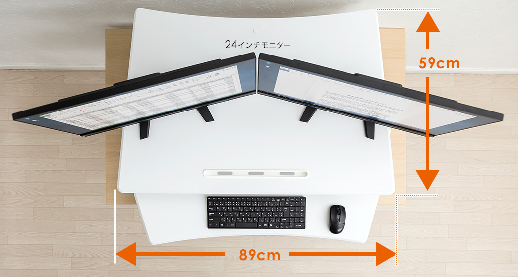 天板は横幅68cm、奥行き59cmで、モニター1台の設置にぴったりのサイズです。
