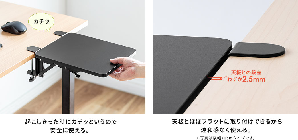●既存のデスクにクランプで簡単に取付ができる拡張テーブルです。