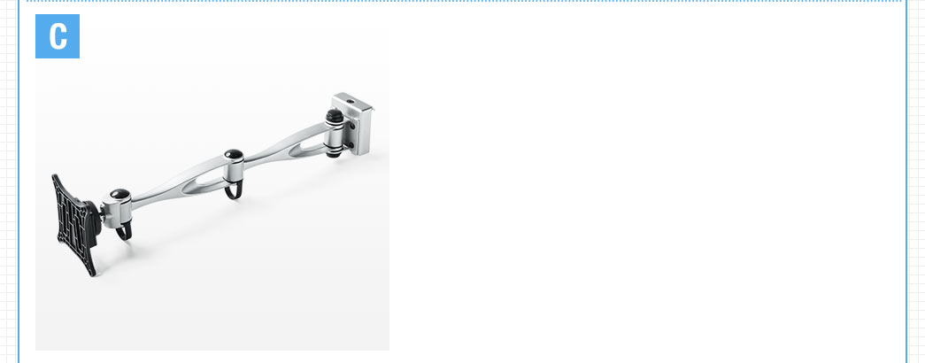 ターアームです。デスクサイズや目的によってパーツを選ぶことができます。