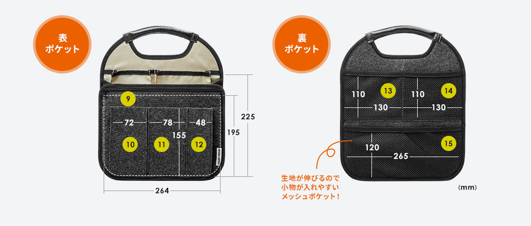 使用し、バッグの中で荷物が見つけやすくなっています。