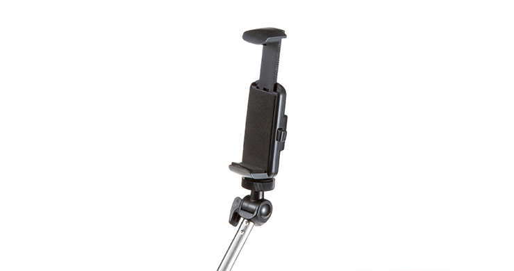 スマートフォンを付属のホルダーに挟んでセットすれば、自撮り棒として使えます。