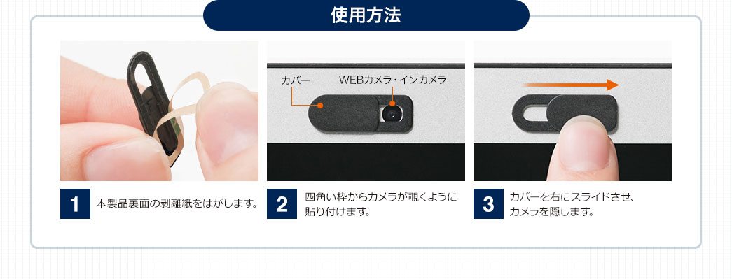 カメラを物理的に塞ぐことで、プライベートな情報や社外秘情報などの盗撮を防ぎます。