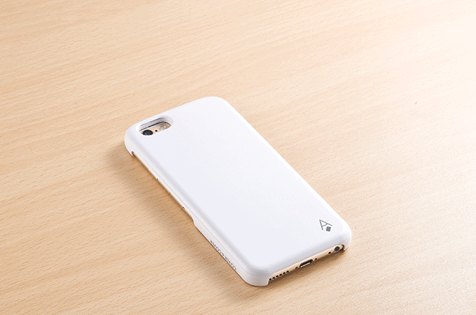 iPhone6をお財布ケータイとして使用できる。SuicaやEdyなどのICカードを背面に収納可能。縦置き・横置きスタンドしても使用可能な薄型でカードが入るケース。