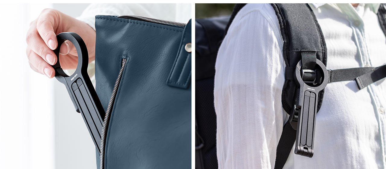 ●カラビナ形状のリングでカバンなどに取り付けできるので、持ち運びに便利です。