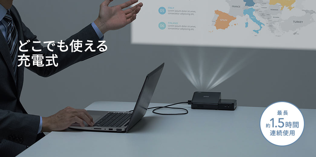 外出先でのプレゼンや、アウトドアでの使用にも便利です。