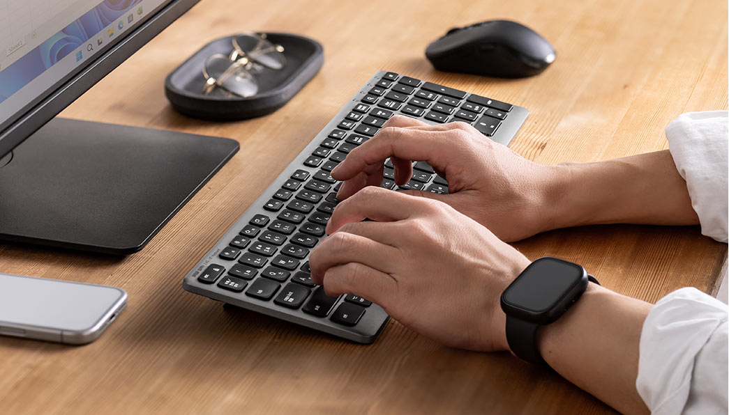 ●ノートパソコンなどで採用されるパンタグラフ式で軽快な打ち心地。長時間入力でも疲れにくい設計です。