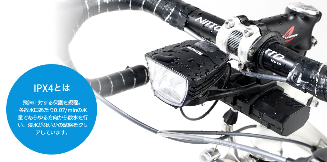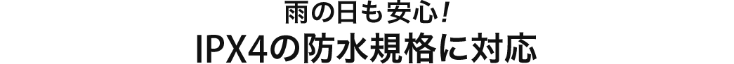 雨天時でも安心して使用できる防水規格IPX4に対応しています。