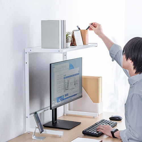 デスクの上の小物やプリンターなどの機器を置くことで、デスクを広く使えます。