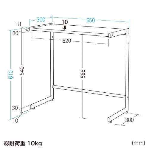 | 総耐荷重 | 20kg(引き出し内 10kg) | 30kg(引き出し内 5kg) | 10kg(天板 8kg、引き出し内 2kg) | 10kg | 10kg | 10kg |