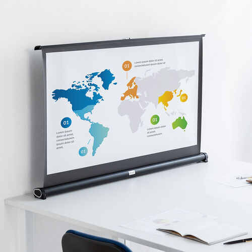 そのため、短焦点プロジェクターを使用する場合は、一般的な壁掛け・吊り下げ式のプロジェクタースクリーンをお使いいただけません。マグネット式などの平面性が高い、短焦点プロジェクター対応のプロジェクタースクリーンをお選びください。