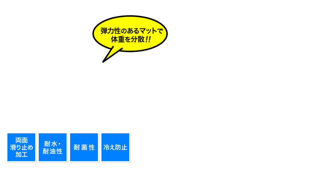 適度な弾力性のあるゴム(ゴム化ジェルフォーム)を使用したマットです。