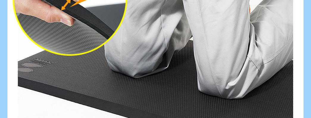 弾力があるので、膝をついても痛みが少なく、工具や部品を落とした場合でも、マットの弾力で落下音も吸収します。