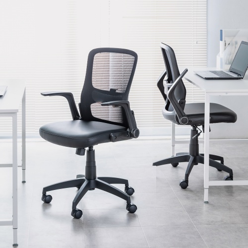 肘掛けは跳ね上げられるので、作業時は腕をしっかりサポート、使わない時はすっきり収納。シーンに合わせて快適に使い分けできます。デスク下に収めたい時や横から座りたい時に肘掛けを収納でき、切り替えることで省スペースと快適さを両立できます。