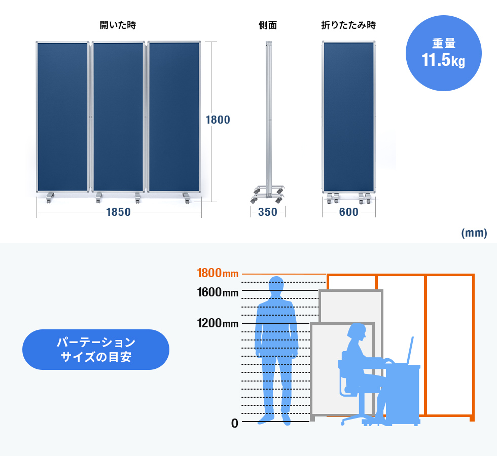 高さ約180cmで、一般的な成人男性が立っている時の目線もしっかり遮ることができます。