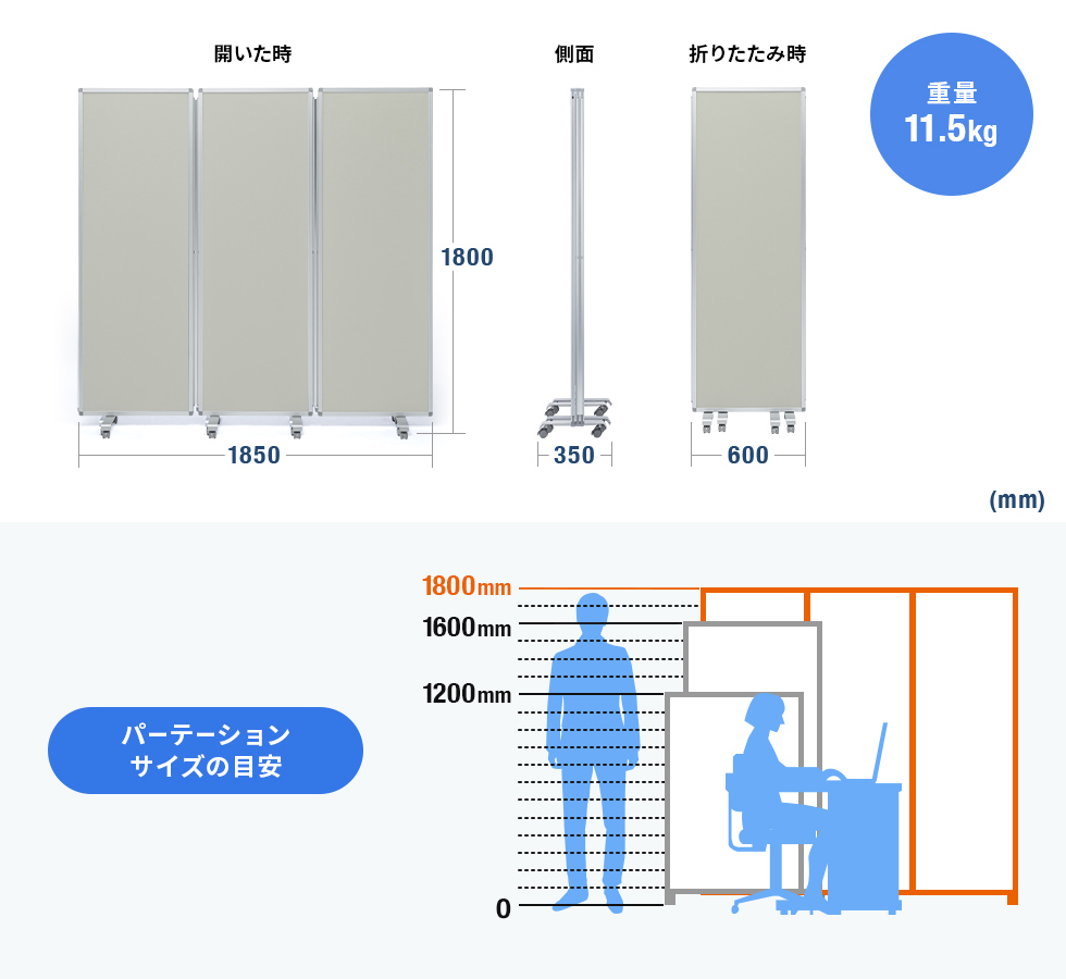 高さ約180cmで、一般的な成人男性が立っている時の目線もしっかり遮ることができます。
