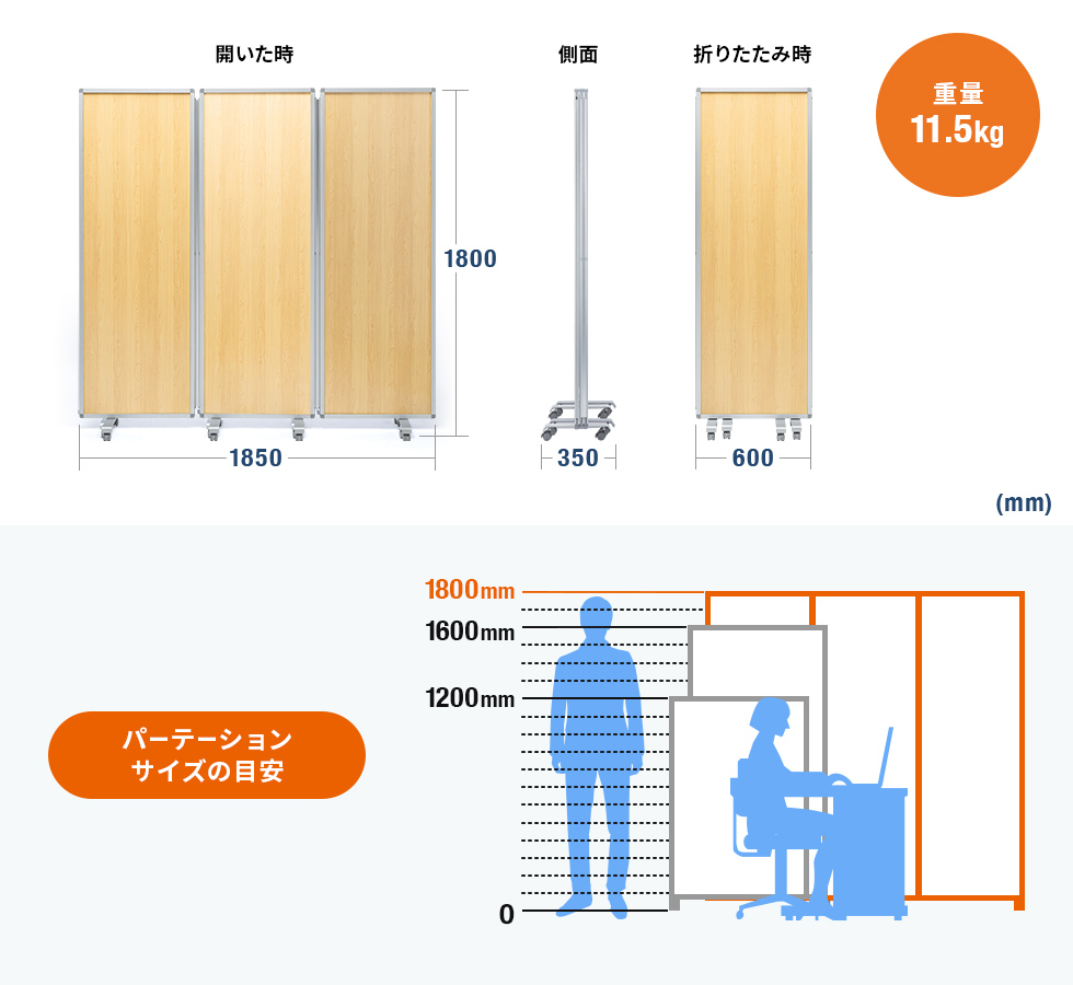 高さ約180cmで、一般的な成人男性が立っている時の目線もしっかり遮ることができます。