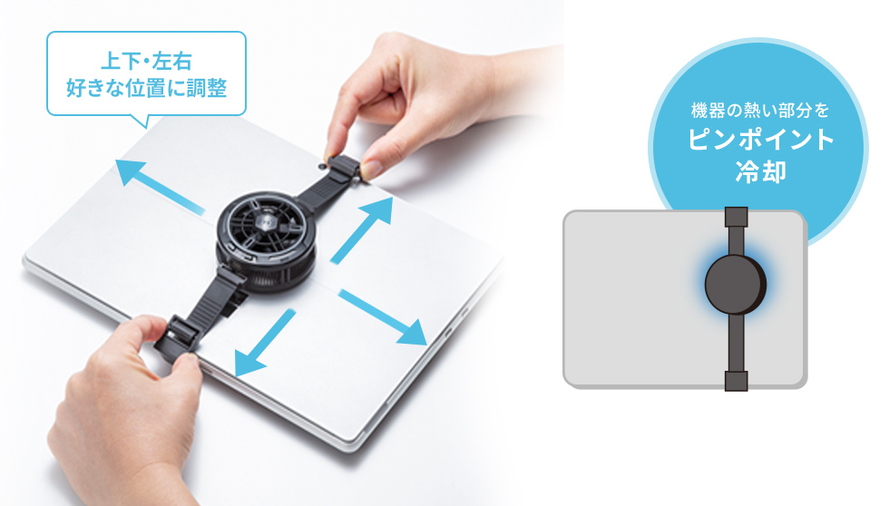 冷えた面を直接タブレットに当てることで、ファンタイプのクーラーよりも断然早く冷やすことができます。