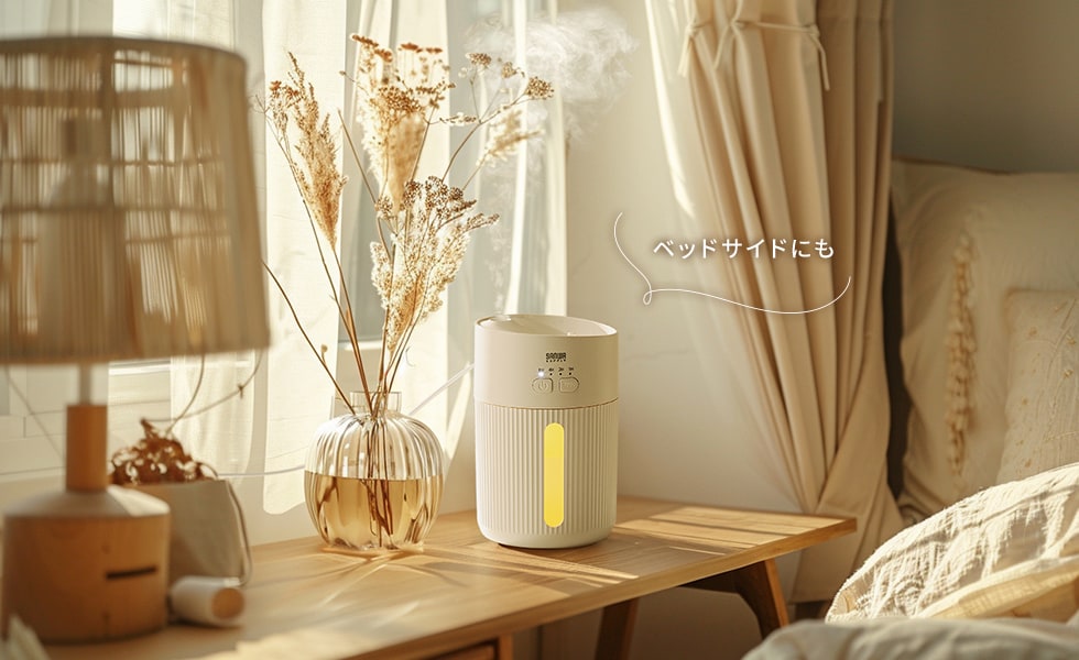 うっかり倒しても水がこぼれにくく、デスクやベッドサイドでも安心です。お子さまやペットのいる環境でも安全に使えます。
