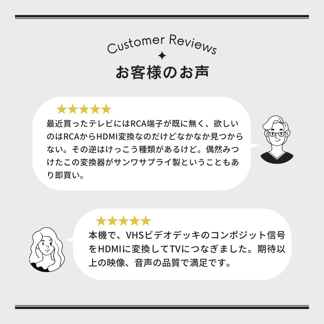 Aコンポジットの黄色だけ挿して映像信号をHDMI信号に変換し、赤と白の音声は別のスピーカーにつないで使うことも可能です。