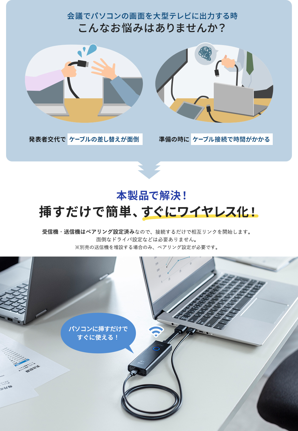 送信機×2台と受信機×1台のセットなので、2つのパソコンを切り替えて使いたい方におすすめです。