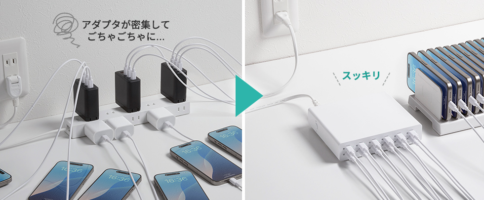 ACアダプタが密集してごちゃごちゃにならず、これ1台ですっきり配線できます。