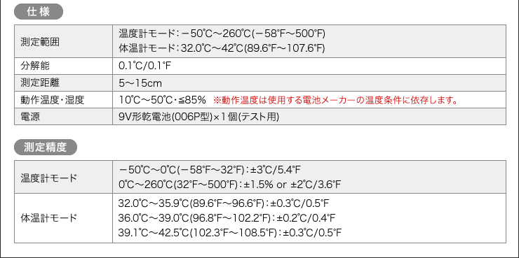 ※体温計モードでの使用において、本製品は医療用の体温計ではありませんので、測定値は参考値となります。