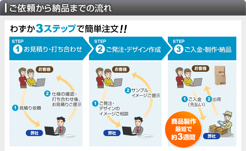 - ※納期につきましては、数量や季節要因の関係でご希望に添いかねる場合があります。お見積り提出時等に弊社営業までお問い合わせください。