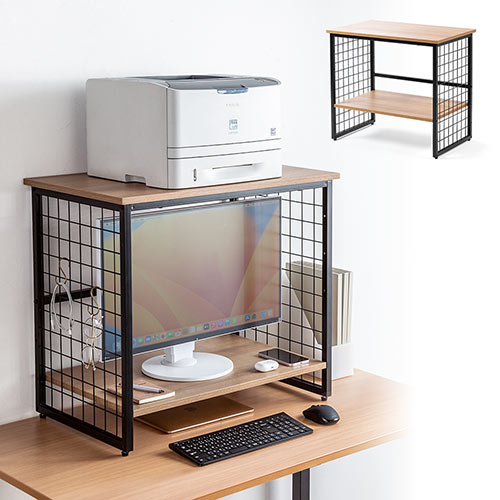 デスク下収納ラック(Mサイズ・幅27cm・2段タイプ・クランプ・マグネット・木ネジ取付け・スチール製・フック・棚板付き・ケーブルトレー・ホワイト)