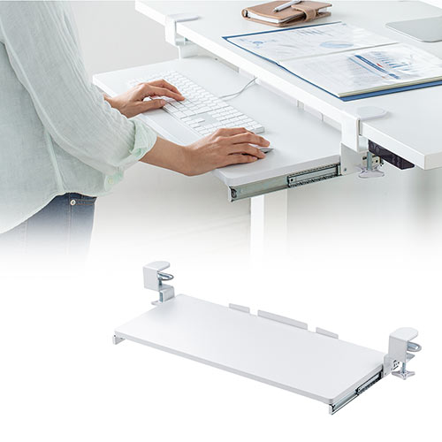 ケーブルトレー(デスク固定タイプ・スチール製・幅90cm・ケーブルオーガナイザ・配線受け・収納・電源タップ・ホワイト)
